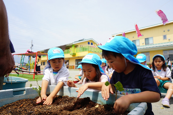 1. 食べる 「食」を大切にできる子どもをめざし、様々な食体験を通して感謝する心や命の尊さを学ぶ食育活動を日常的に行っています。芋畑づくり ~芋掘り~芋煮会~クッキングデー ~おにぎり作りから始まる四季の行事食作り(団子・Xmasケーキ・恵方巻他)地産地消の「楽しいおにぎり作り」(県研究発表テ-マ)